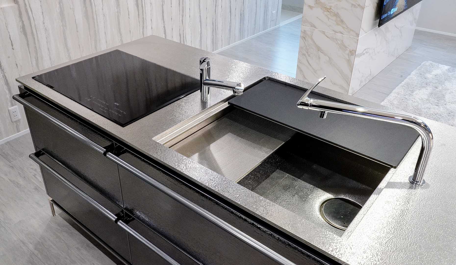 シンクの中で調理が完結する「パラレロシンク」はまな板などをスライドさせることで、ひとつのシンクが両側から同時に使えたりと、家族との時間にもよい変化をもたらしました。