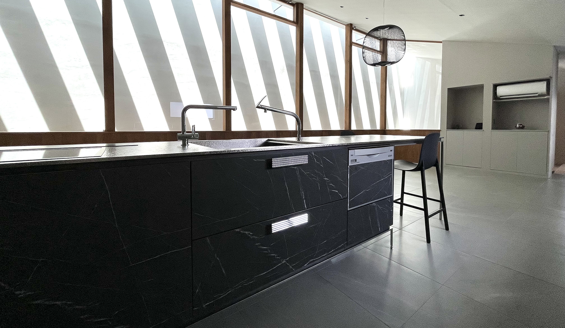 レンジフードを吊らず、GAGGENAUのテーブルベンチレーション式レンジフードを採用したことでよりインテリア性の高いキッチンになりました。
