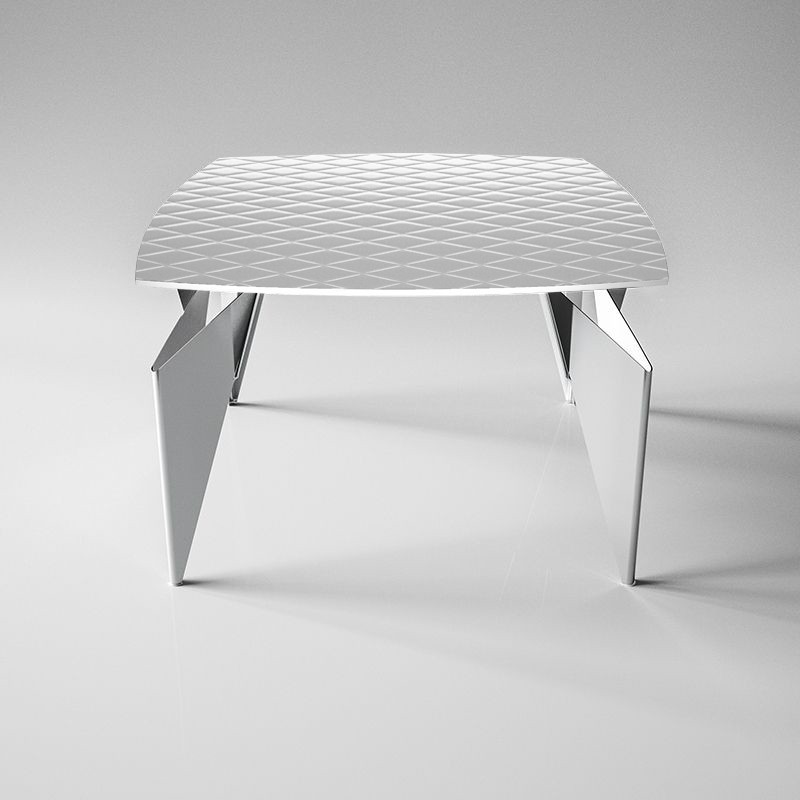 キッチンと合わせてダイニングテーブルには「オリガミスクエア」のキルトデザインを、そしてダイニングとリビングには「集」シリーズを採用いただきました。