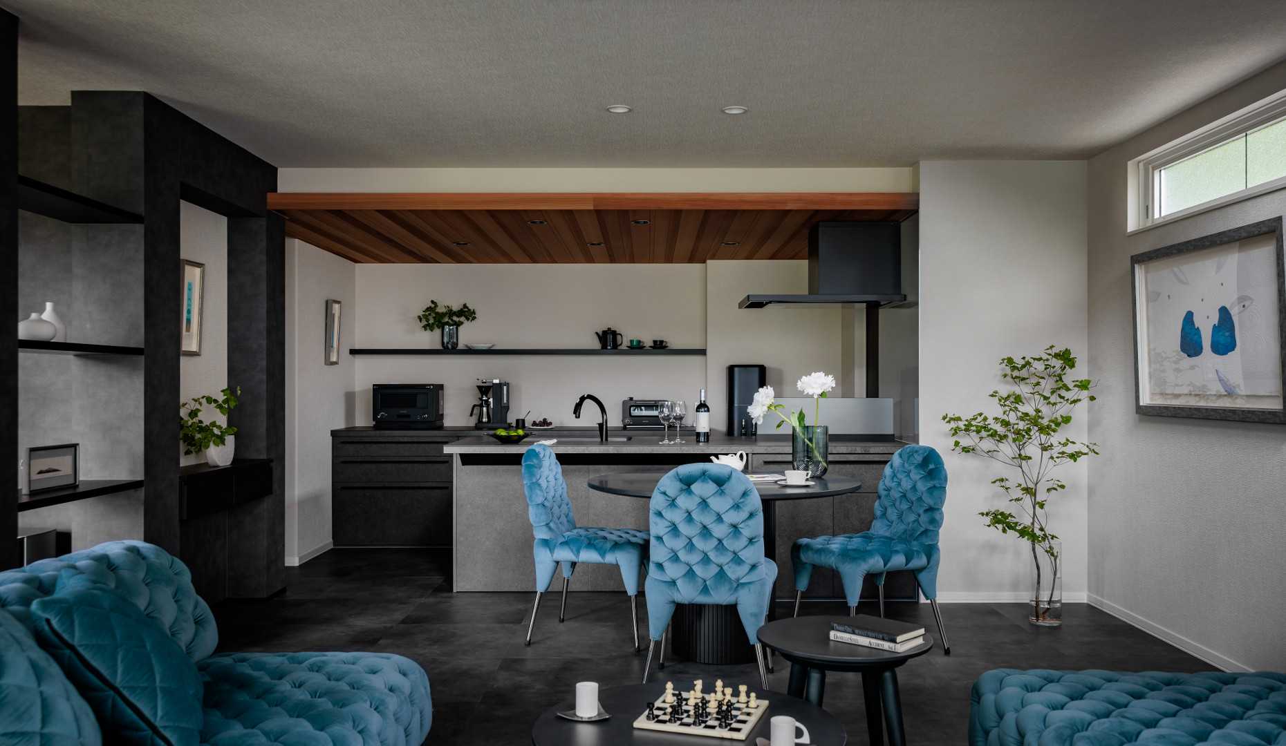 組み合わせ自由なソファ集(つどい)と同じデザインの集(つどい)チェアを組み合わせることで、統一感のある空間が生まれました。