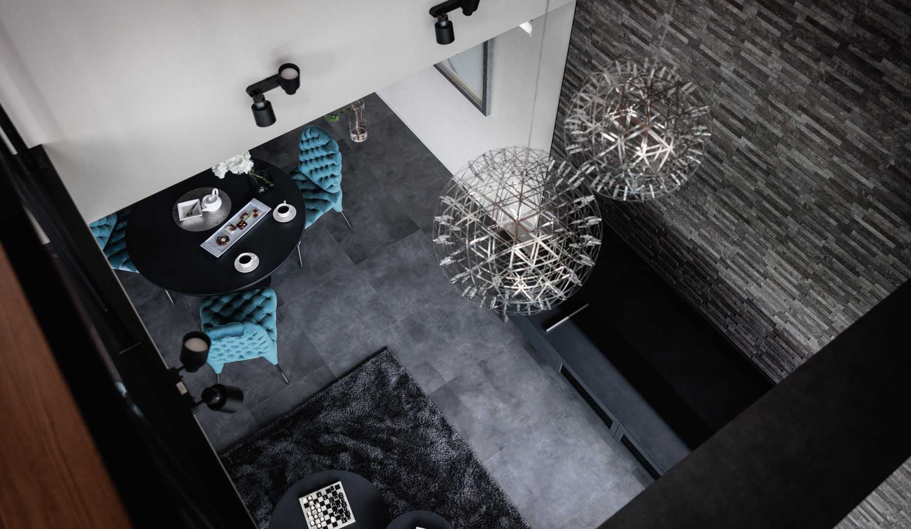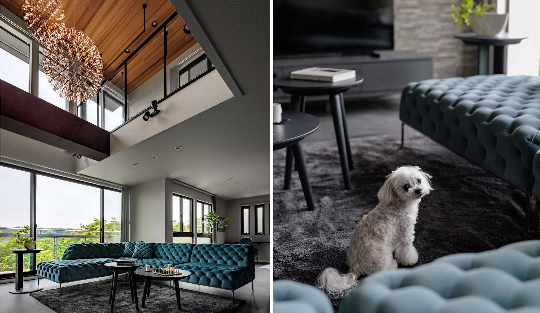 リビングの吹き抜け部分を活かしてmoooiの照明レイモンドを高さを変えて設置しました。まるで惑星のようなレイモンドは吹き抜けなど天井が高い空間に設置すると、ダイナミックで華があります。