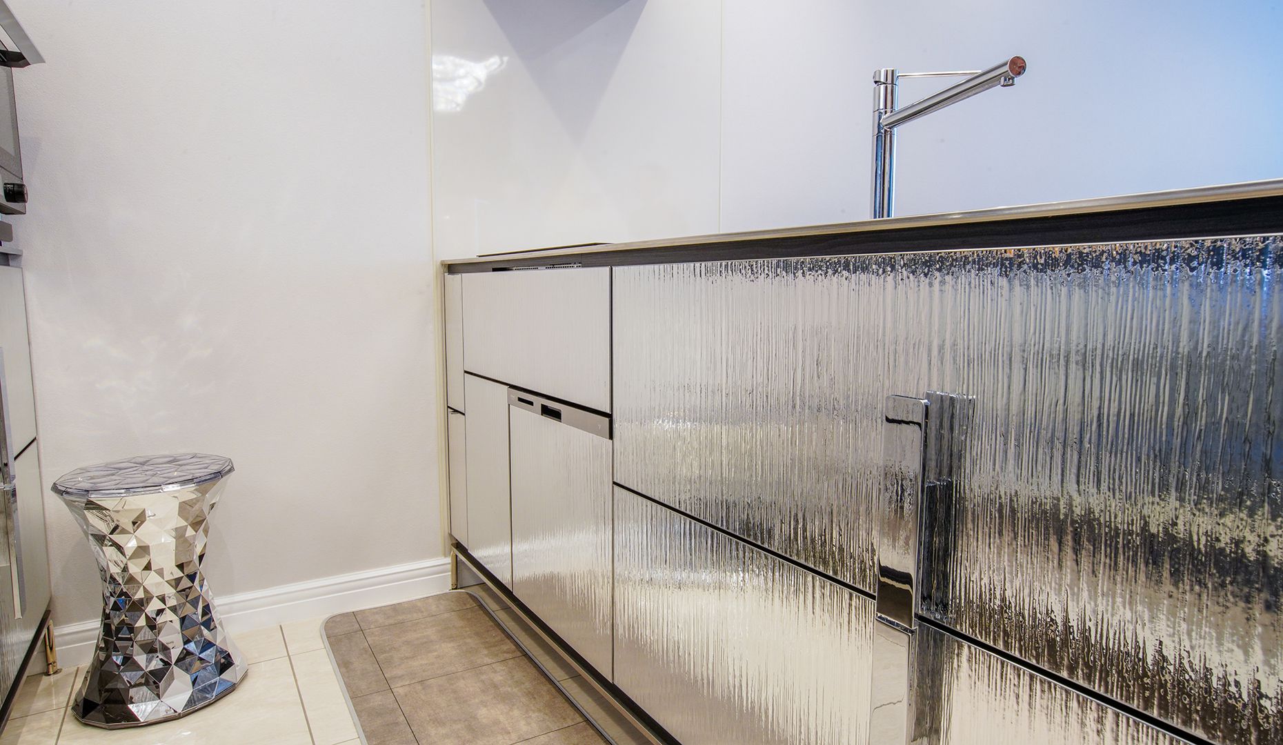 風水の考え方を取り入れて、扉には流れる滝をイメージしたスプラッシュシルバーを選ばれました。