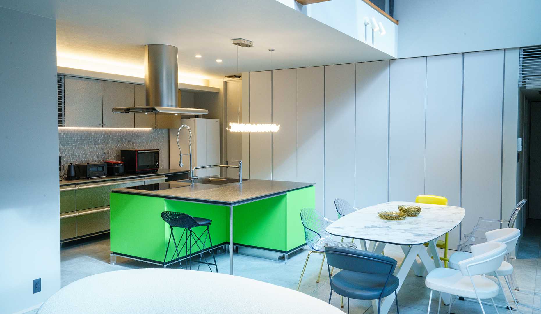 ショールームを訪れ、Q-LANDの正方形の形とフレッシュグリーンの色などのデザインと、ゼロ動線キッチンの説明を受け使い勝手の良さを気に入られました。