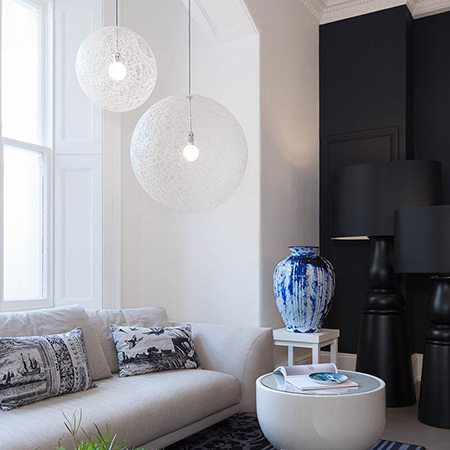 ランダムライトは本体自体がディフューザーの役割をし、中心の光源を拡散させて、その姿はまるで夜空に浮かぶ月のような印象を受けます。