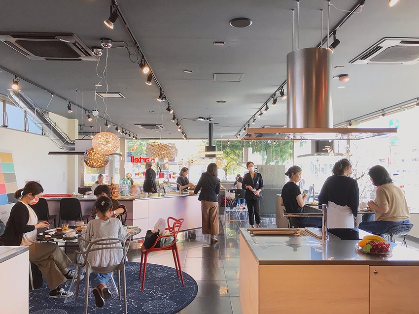 お菓子作りの後は、参加された皆様とショールーム内でお茶会を開催。