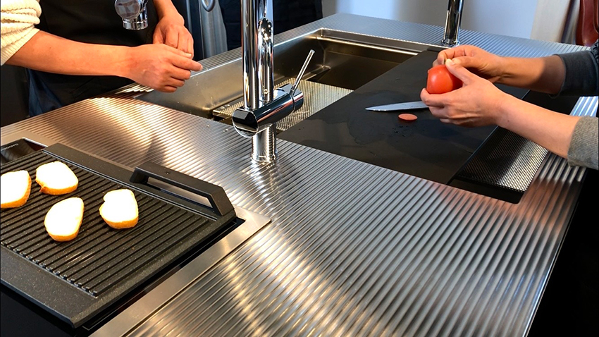 体験会では、食材の下準備から、調理、洗いものまで、シンク内ですべての調理工程が完結できる機能を体験いただきます。