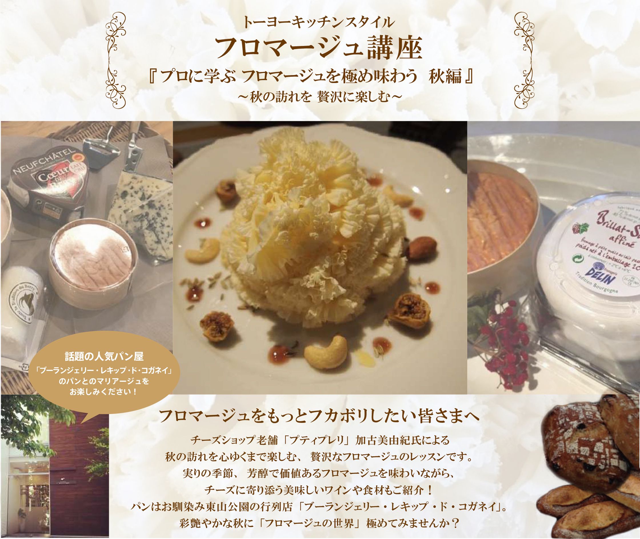 チーズショップ老舗「プティプレリ」加古美由紀氏による、秋の訪れを心ゆくまで楽しむ、贅沢なフロマージュのレッスンです。