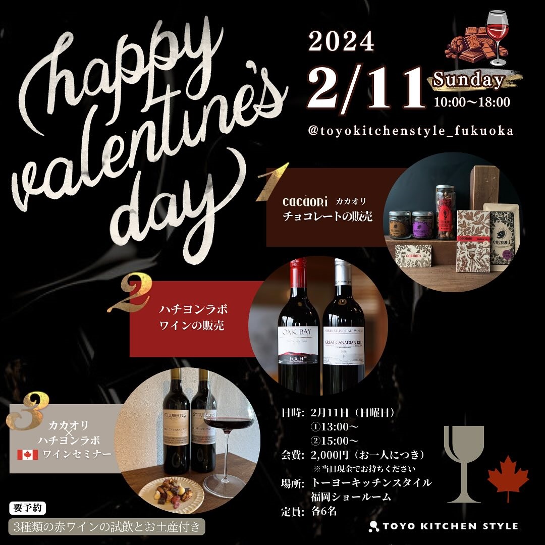 福岡市御所ヶ谷にあるカカオリさんのチョコレートと、カナダ産オーガニックワインを扱うハチヨンラボさんがコラボレーションする一日限りのイベントです。