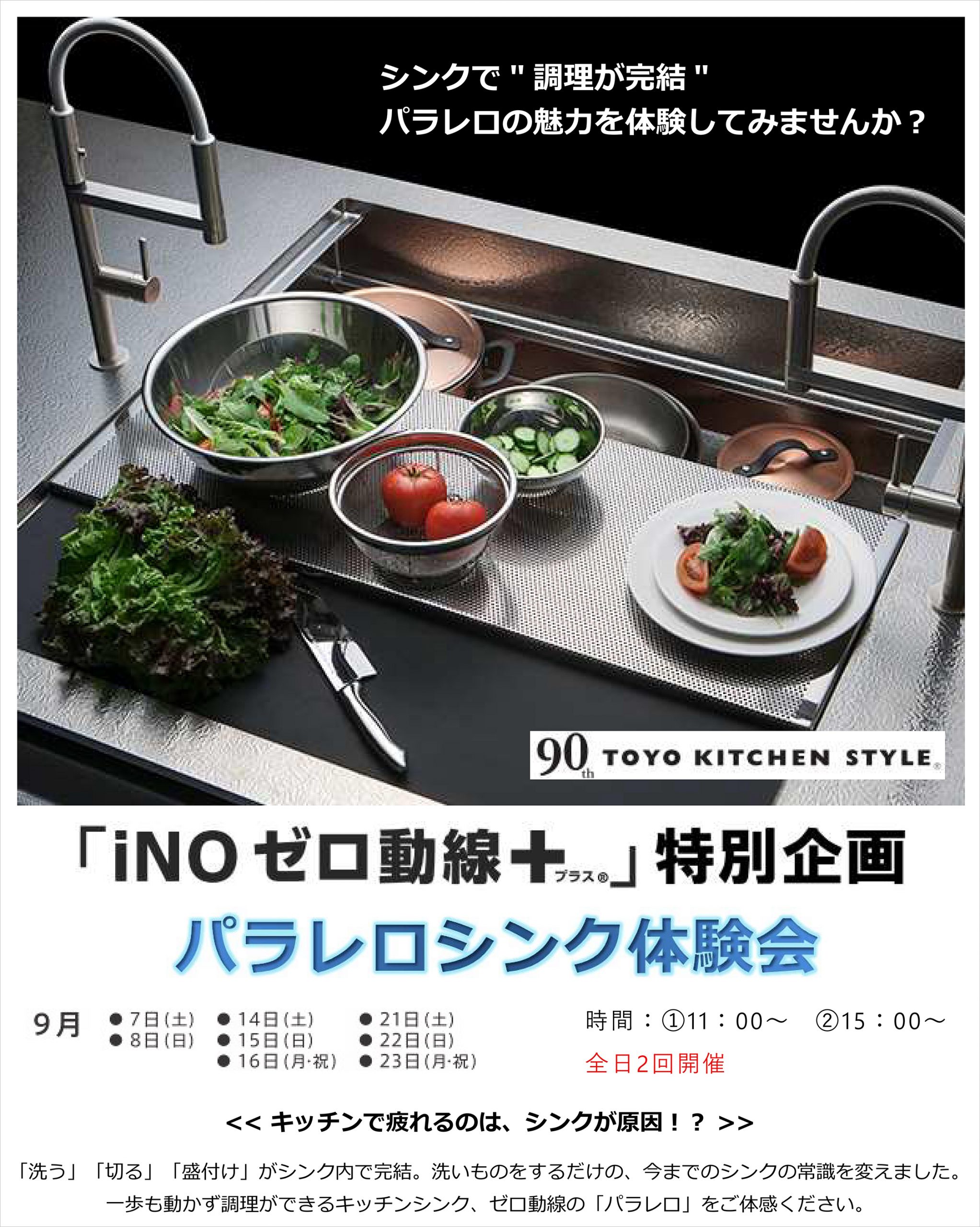静岡西ショールームでは、「iNOゼロ動線プラス」特別企画『パラレロシンク体験会』のご予約を受付中です。