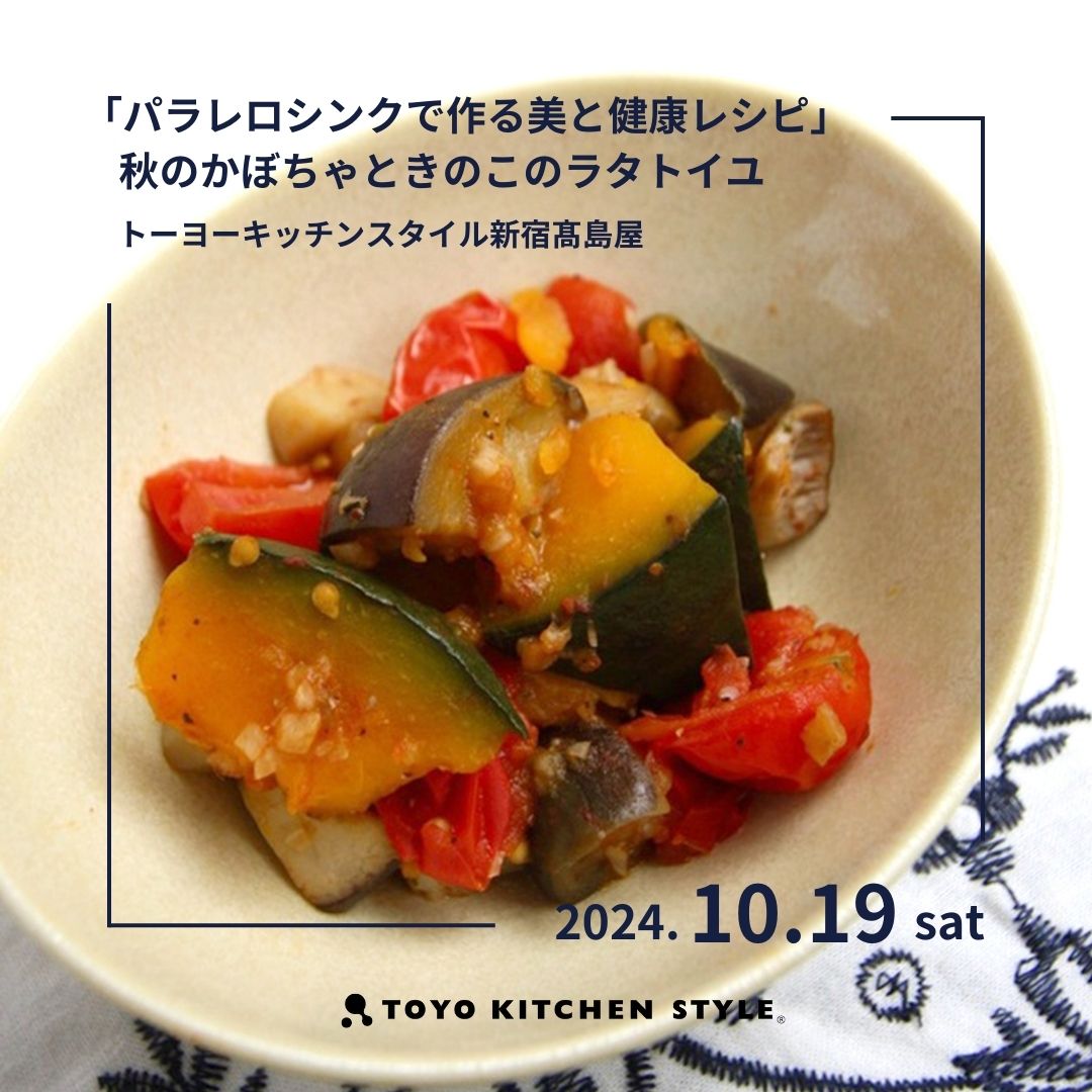 そんなお悩みを解消するべく、前回もご好評いただいた「パラレロシンクで作る美と健康レシピ」をテーマに、今回は旬の秋の素材をふんだんにつかった「かぼちゃときのこのラタトィユ」の調理をパラレロシンクを使って体験いただきます!