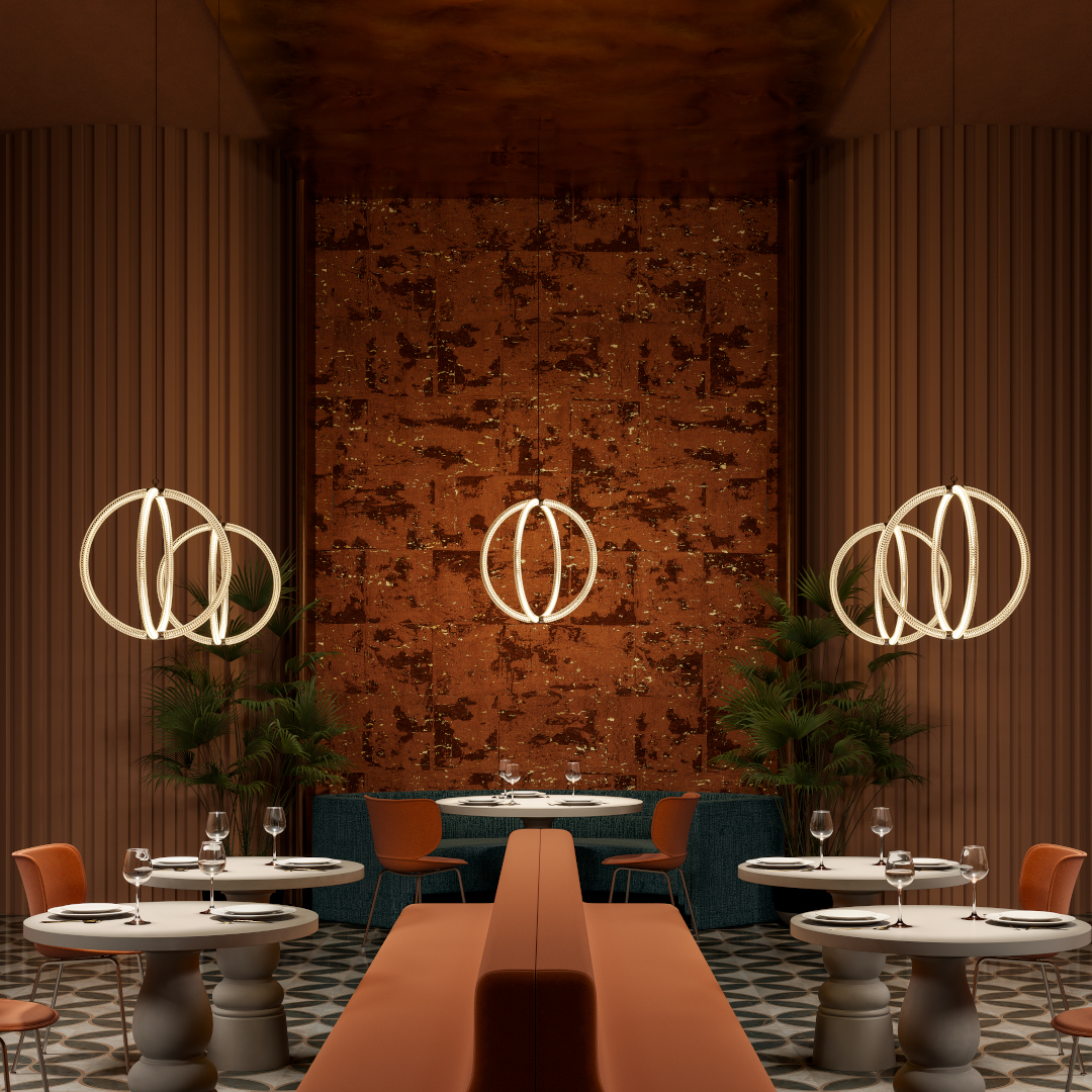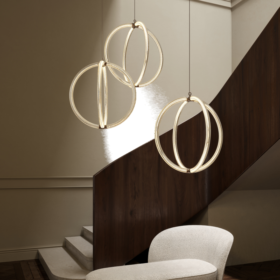 ムラーノ・ガラスの伝統と黄金比の数学的美学が融合し、ロマンチックな雰囲気を演出。時代を超えて愛される新たな照明です。