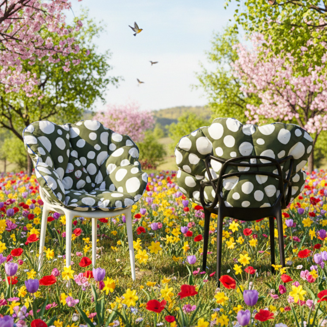 さらに、マスターズにぴったりフィットする「アリスズフラワーズクッション」を合わせれば、華やかさと柔らかさがプラスされ、季節感のあるコーディネートに。