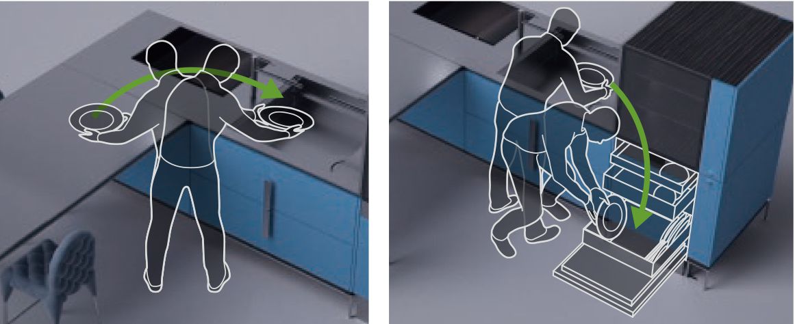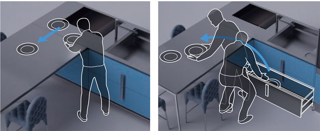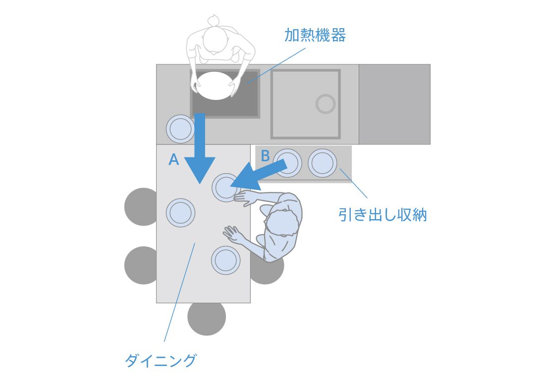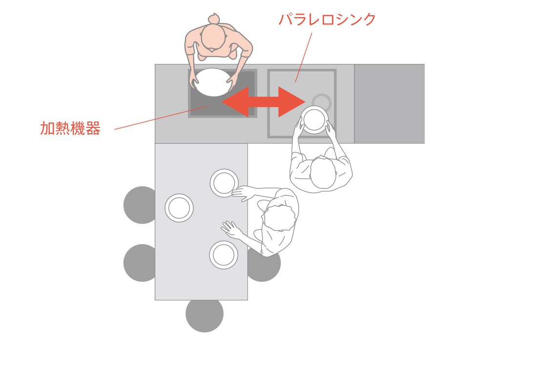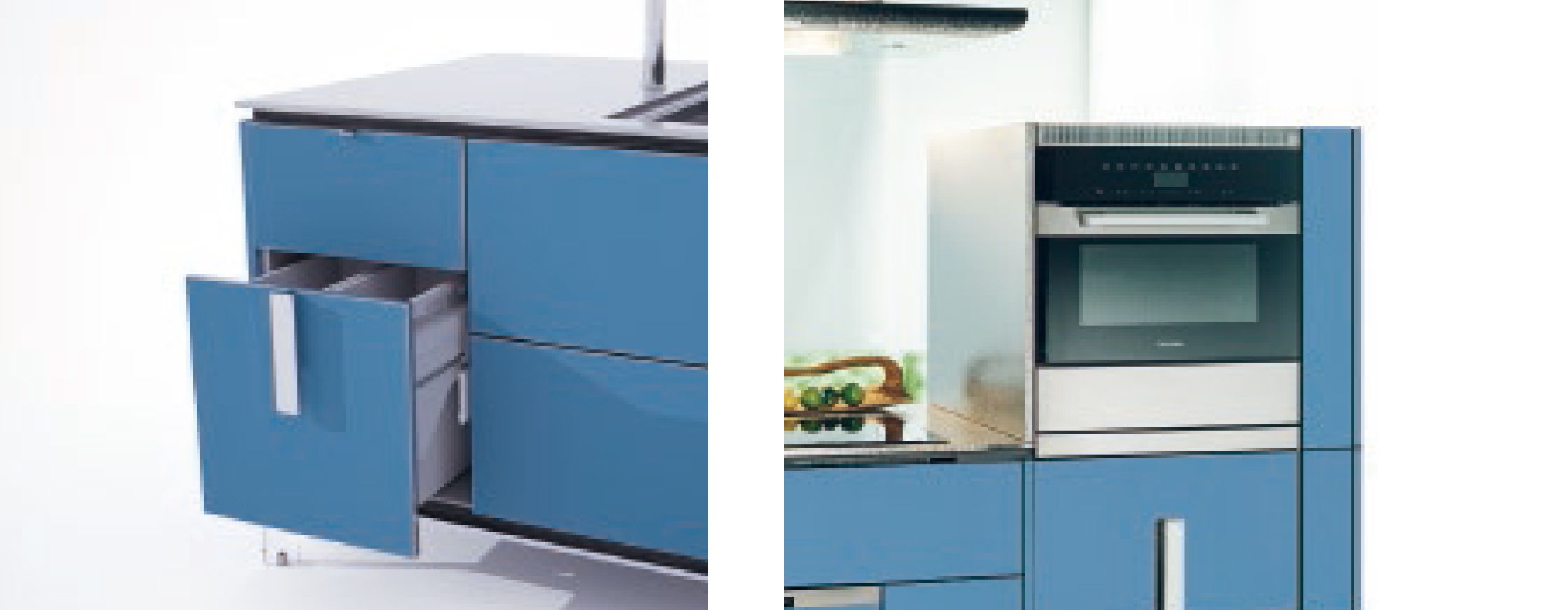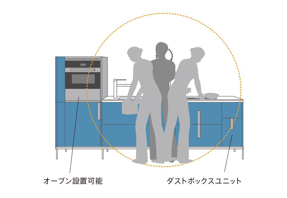 右:目線の高さに加熱機器をビルトインすることも可能。