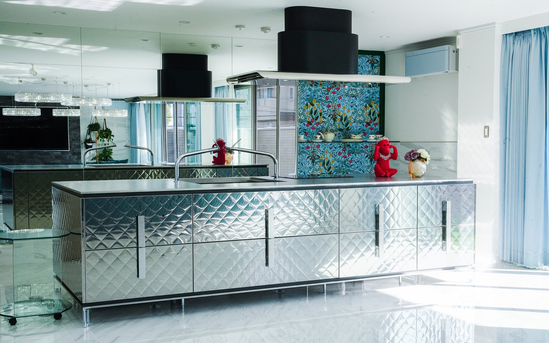 ステンレスでありながらキルティングを思わせる立体感のある加工を施し、柔らかい印象を与えるステンレスキッチンです。唯一無二のデザインです。