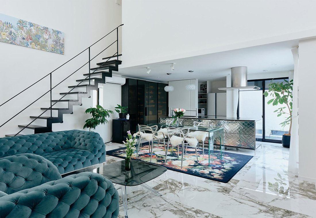 華やかな印象を与えるアイス仕上げは、お部屋の中でも一際存在感を放ちます。昼と夜で異なる表情を見せるステンレスキッチンは、常に新鮮で、永く愛着を持てます。一方で、ステンレスは無彩色のため、インテリアテイストは選ばず、合わせることができます。