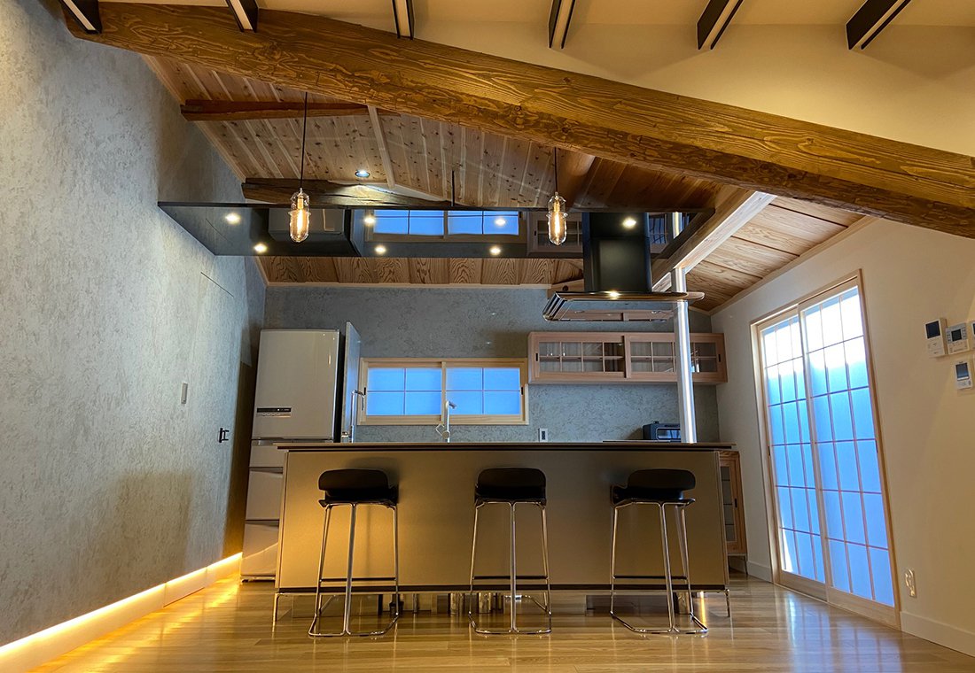 キルトは鏡面仕上げを施していることで、床材や家具がキッチンに映り込み、お部屋のインテリアに調和します。