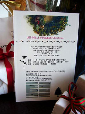 12月8日(土)に、スタジオ金沢にて『レ・ミルフォイユ』主催のクリスマスリースレッスンを開催。