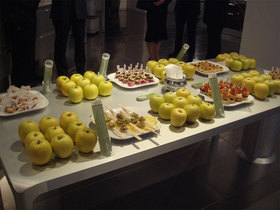 グランドオープン前日の2月1日(金)には、普段懇意にさせて頂いているお客様をお招きして、特別ご招待会が行われました。開放的なスタジオでゆったりとお過ごしいただき、お飲み物はシャンパンをご用いいたしました。使用しているグラスは六本木meubleWeb SHOPにて限定販売中の落としても割れないポリカーボネイト製グラス。かなりのご好評をいただきました。