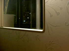 スタッフ一押しのミラー。アルグラフィックが施された表面のデザインは、誰もが一目惚れする美しさです。姿見としての役割ではなく、インテリアを彩るアイテムとして配置することができます。「iNO」「ISOLA」といった当社キッチンのフラッグシップモデルにも相性が抜群です。「アルグラフィック」はYCAMI社の特許技術。アルミの魅力を最大限に引き出しています。