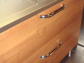 光沢のあるハンドルはキッチンのイメージをアップさせ、高級感が漂います。