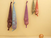 置き場所に困る根菜類は、風通しの良いベジネットに入れて吊るせば