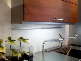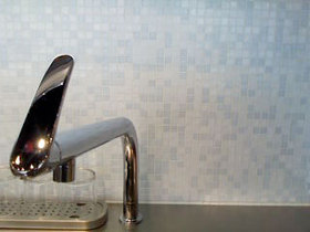 ベネツィアンガラスは水を吸収しないため、腐食や変色の心配がなくキッチンはもちろん