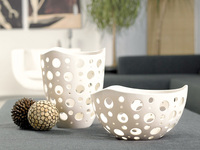 チーズの王様」とも呼ばれるエメンタールのように穴のあいた可愛らしいデザインの器。陶器製で穴があいているユニークな形状は、そのままインテリアオブジェとして飾ったり、フルーツバスケットやパン類の盛り付けにも最適です。チーズシリーズは職人が一つ一つ丁寧に穴をあけ、形成したハンドメイドの器です。キャンドルを置けば、光の演出も楽しめます。