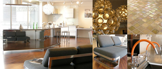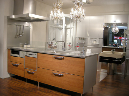 キッチンを中心に照明、家具、モザイクタイルなどを展示し、