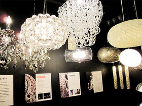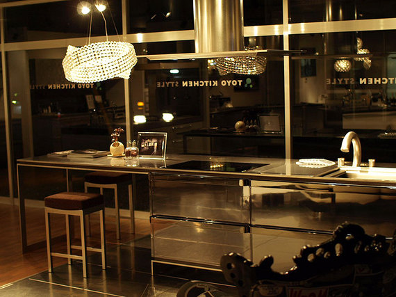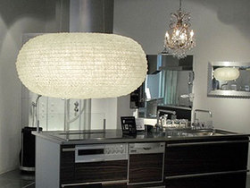 トーヨーキッチンが提案するモザイクタイル、シャンデリアで