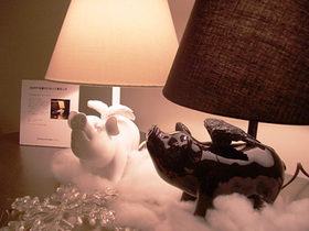 大人気のフライングシリーズのブタちゃんに天使のわっかのようなライトがくっついています。程よくアクセントを取り入れたいくつろぎ空間や、ベッドサイドにぴったりです。