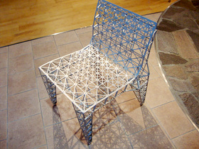 2mm厚のアルミニウム板をカット、折り曲げ、そして機械的に固定する事により得られた三角形状の構造体による椅子です。革新的な加工方法で「折り紙」のように作られています。2.9kgという軽量性も実現。