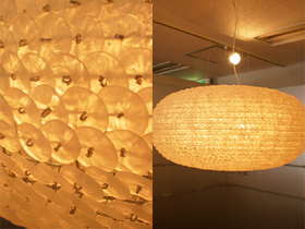 アカリを灯すとあたかも空にふんわり浮かぶ雲のよう。やさしい光が空間を漂います。