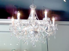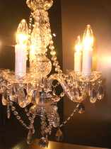 クラシカルなフォルムにクリスタルのオーナメントを用いたシャンデリアは、軽やかで上品な輝きを放ちます。