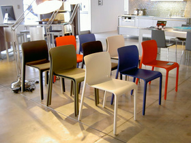 樹脂製のチェアは、メンテナンスはもちろん、バリエーションの豊富さも魅力のひとつ。お好みに合った一脚をセレクトできます。
