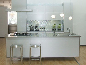 カウンターとトール収納をシンメトリーに配置したり、キャビネットのならびに規則性を持たせたり……美しく配置することで、キッチンスペースの見え方が変わってきます。