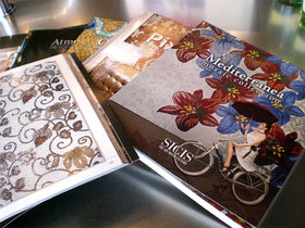 様々なパターンのベネツィアンモザイクタイルのカタログ(右写真)をご用意しております。