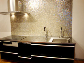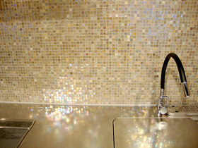 壁面にはヴェネツィアンモザイクタイルの中でも人気の高いマリーゴールドを施しました。