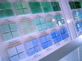 名古屋ショールームでは、タイルサンプルやカタログも豊富に取り揃えております。ショールームのセットにもモザイクタイルをたくさん展示しておりますので