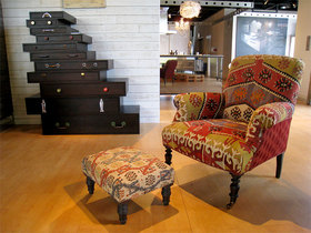 日本の伝統収納、階段箪笥を模倣したようなオブジェ的要素も含んだキャビネットです。ひとつひとつの把手は、別々の形状で面白みのあるデザインです。