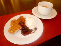 出来立てワッフルとドリンクのサービスです。