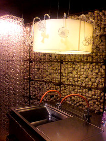 一つ一つ手作りのガラスオーナメントにより、ボリーム感がたっぷりとあるシャンデリアです。例えば、写真のように人の目線に配置することで、空間が一段と華やかになり、家具が一つ増えたような新しい印象を演出してくれます。