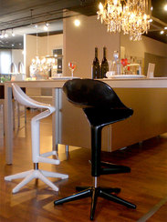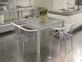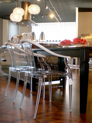 TOYO KITCHEN STYLEオリジナルのイゾラタボとフィリップ・スタルクとエウゲニ・キレによる、未来のマスターへの贈り物としてデザインされたミミンアームチェアの組合せです。