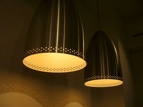 マット仕上げのアルミ製吊り照明。かわいらしい星型のドットから洩れる光が空間を照らします。