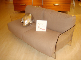 Popは工業技術の成果で実現した初の「無限に延長可能な」システムソファ。解体も簡単です。透明ポリカーボネート製のモジュールをお好きな個数分だけ組み立てて、背もたれ、座面(プラスチック板で構成)、アームレスト等、ソファーのフレームを作ります。グースダウンを使用した柔かいクッションはゆったりと大きく、張り地は豊富なバリエーションを取り揃えています。