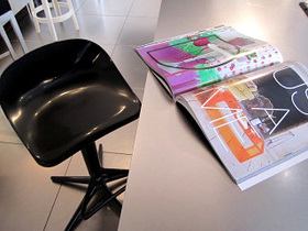同ブランドの『Mobilシステム』と『Battista(折りたたみテーブル)』がMoMAの永久コレクションにも認定され、各国で高い評価を受けるアントニオ・チッテリオがデザインしたスツール『スプーン』。