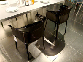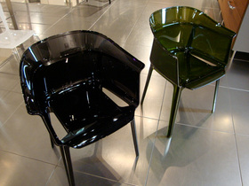 フィリップ・スタルクとエウゲニ・キレデザインのアームチェアです。透明な本体にオメガ(Ω)の形をしたアームレストと背もたれが印象的です。