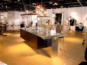 キッチンショールームと思われて来館される方は皆様驚かれるのですが、今回のショールームは「キッチンのショールームではない」と言ってよいほど、豊富な家具、照明、ベネツィアンモザイクなど紹介できる商材が多数ある「インテリアショールーム」となっています。