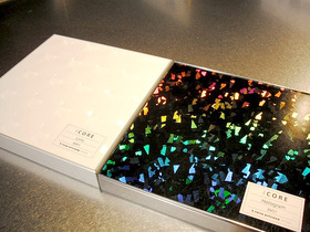 虹色に輝く大柄なホログラム粒子が、角度によって動き出します。