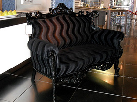 【右】『Black mink(ブラックミンク)』は木彫りの装飾的なフレームとウェーブの模様の座面がインテリアのアクセントに★