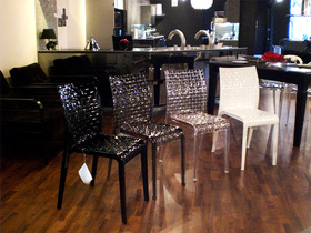 バロック調のデザインを現代風にポリカーボネートで表現したチェア。